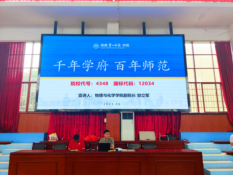 为贯彻落实学校2023年本科招生宣传工作统一安排部署,以“扩大我校影响,吸引优秀学生,提高生源质量”为目标,6月25日至26日,bv1946伟德国际始于英国副院长邹立军和化学系教师王石功一行先后赴娄底二中、双峰一中、双峰县曾国藩学校和涟源一中等四所中学开展高考招生宣传活动。