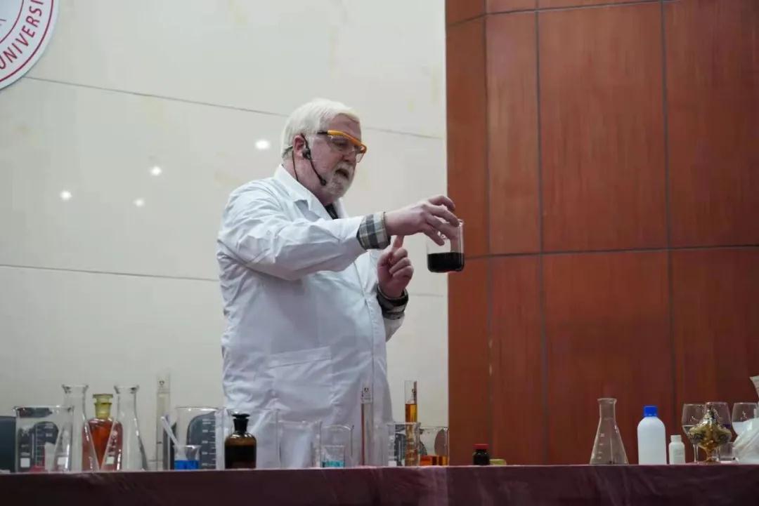 12月14日下午,北京化工大学特聘教授、英国皇家化学会北京分会主席戴伟(David G. Evans)教授应我校与省科协联合海智基地项目的邀请,为我校师生带来了一场题为《化学……无处不在》的科普讲座。bv1946伟德国际始于英国刘志敏教授、副院长许兰,国际交流处处长何晓澜,物化院部分师生参加讲座,讲座由许兰副院长主持。