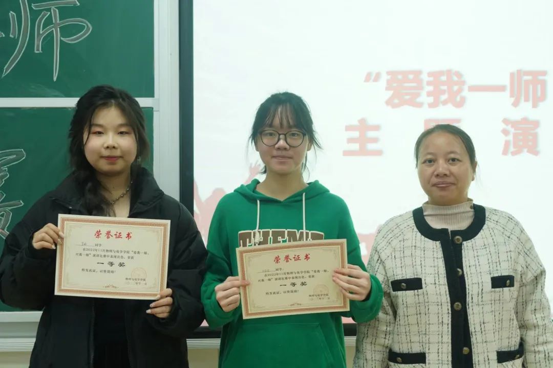 经过各方面综合评审,22级915班罗婷、22级916班王佳怡荣获一等奖,21级878班马缘、21级879班徐洁、21级880班阳嘉丽荣获二等奖,22物理1班傅嘉仪、22科教1班汪雷、21科教1班彭颖、22级917班周泉仪荣获三等奖。最后参赛选手与老师们合影留念。