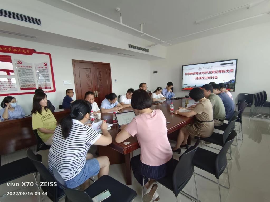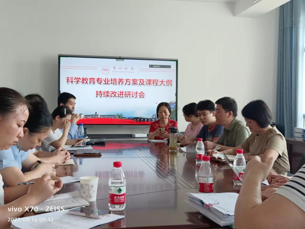 bv1946伟德国际始于英国于2022年8月16日上午,在百熙楼1013召开科学教育专业培养方案及课程大纲持续改进研讨会。邹立军院长助理主持会议,参与会议的人员有许兰副院长,刘洁文、龚婧以及参与专业认证的科学教育系、物理系和化学系老师。黄文主任根据前期专家讲座的精神提出培养方案和课程大纲持续改进的几个问题。第一,目标定位需要三个必备,即服务面向、职业能力特征、人才定位。科教培养方案目标还存在定位描述不妥当,培养思路和培养目标混同等问题,此次会议全体参会人员字斟句酌研讨了培养目标的表述。第二,就达成毕业要求的高关联课程及其矩阵进行研讨。第三,教育见习、教育实习和教育研习等教育实践类课程支撑毕业要求矩阵需三习贯通,保持递进关系。第三,课程大纲是执行培养方案的重要纲领性文件,需根据最新模板修订课程大纲。最后,许兰副院长总结发言指出,必须知晓熟悉去年教育部采集的教学状态数据报告,自评报告和采集数据要保持一致,可以补充说明我们的改进情况;按照高要求修改教学大纲是对学校“两性一度”金课建设的重要内容。