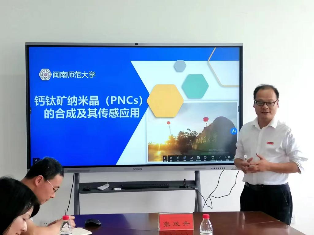 2023年5月26日,闽南师范大学张茂升教授受邀于百熙楼1013室为我院物理系、化学系全体教师作题为“钙钛矿纳米晶(PNCs)的合成及其传感应用”的学术讲座。讲座由bv1946伟德国际始于英国副院长(主持行政工作)许兰教授主持。