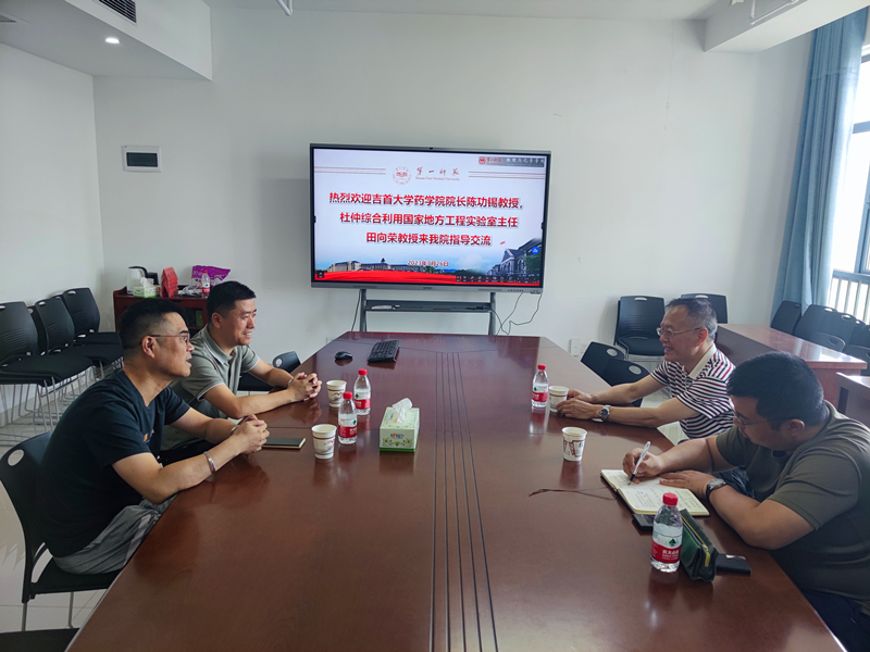 7月26日上午,吉首大学药学院院长陈功锡教授、杜仲综合利用国家地方工程实验室主任田向荣教授一行莅临我院指导交流。bv1946伟德国际始于英国党委书记陈志武,副院长邹立军和化学系骨干教师参加座谈交流。
