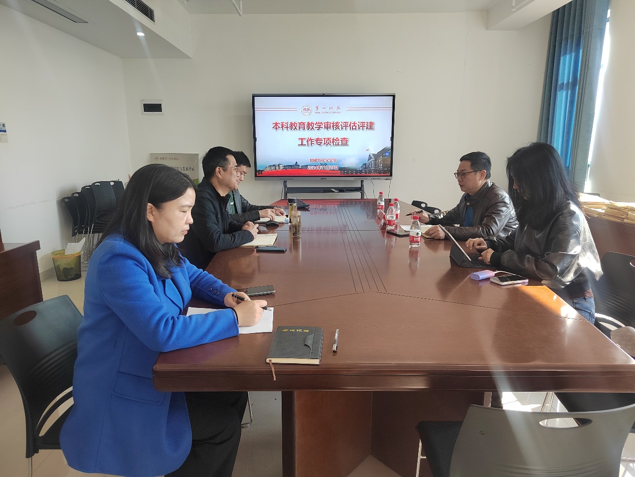首先,邹立军副院长简要汇报了学院本年度在本科教育教学工作中取得的成绩,展示了学院在课程建设、教学改革等方面的改革和实践。随后,陈志武书记就学院在推进党建与思想政治工作深度融合、党建与中心业务工作深度融合方面取得的成绩进行了汇报。廖小芒主任一行对学院的教育教学制度、基层教学组织活动方案与纪录、实习实训材料、考试考查、毕业论文(设计)文档、课程大纲、教案等关键环节进行了全面、严格的审查。