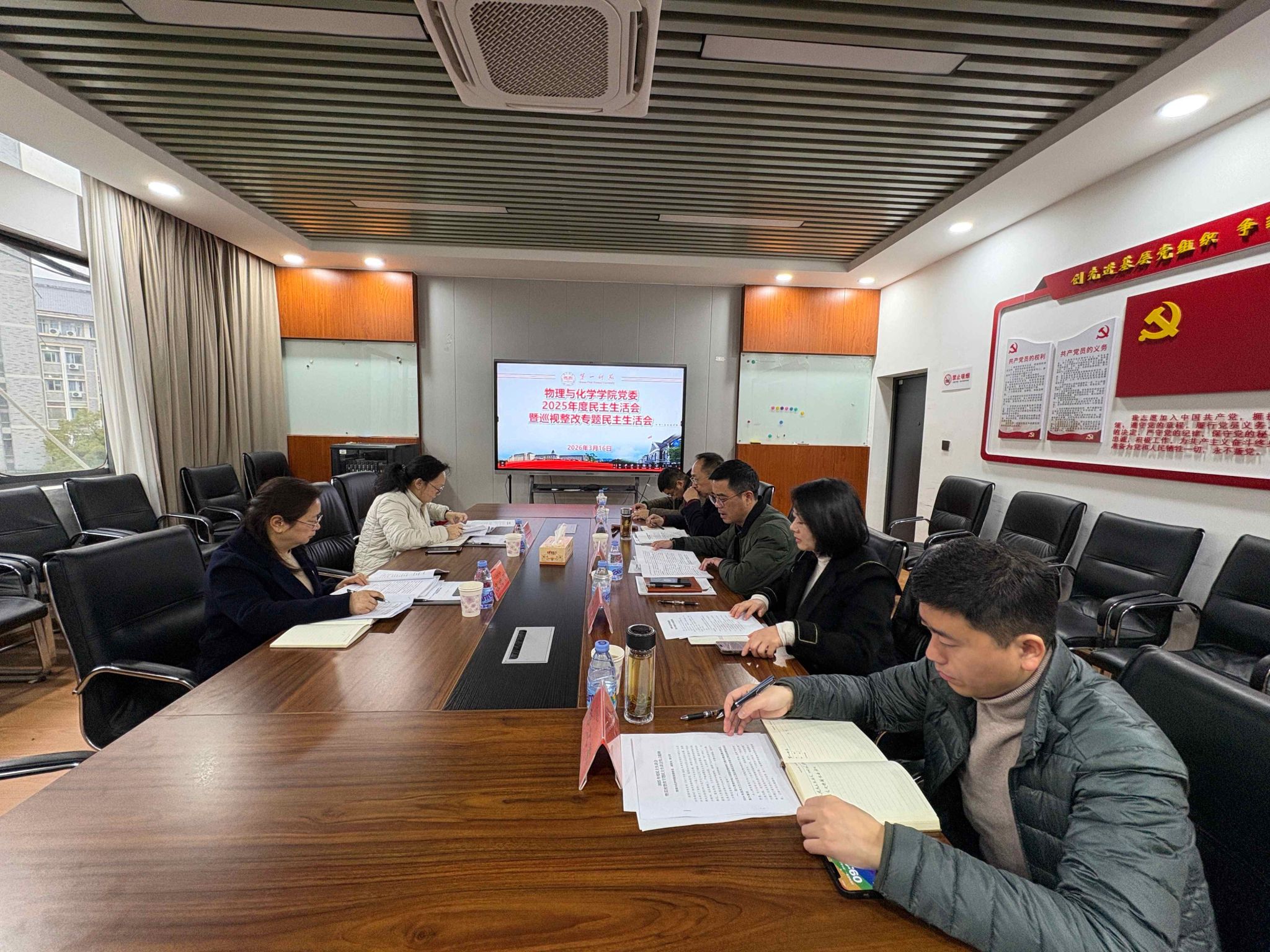 3月16日,我院党委召开了2025年度领导班子民主生活会暨巡视整改专题民主生活会。会议紧扣“深入学习贯彻习近平新时代中国特色社会主义思想,全面贯彻落实党的二十届四中全会精神,以打攻坚战、持久战的决心和恒心,锲而不舍落实中央八项规定精神,推进作风建设常态化长效化,以优良作风凝心聚力、真抓实干,奋力开创中国式现代化建设新局面”核心要求,聚焦主题开展查摆剖析与批评和自我批评,切实达到统一思想、凝聚共识、改进工作的目的。学校2025年度民主生活会第四指导组校党委委员、纪委书记凌艳平,纪委监察专员办公室副主任李静指导了我院本次党委民主生活会。院党委委员陈志武、许兰、李辉华、邹立军、吴昌义参加了本次会议,会议由院党委书记陈志武主持。