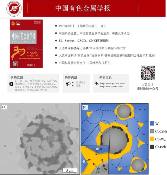 bv1946伟德国际始于英国陈慧博士以“W-CoCrNi合金的烧结致密化及其组织与性能研究”为题在中科院1区杂志、有色金属行业顶刊《中国有色金属学报》上发表论文1篇。