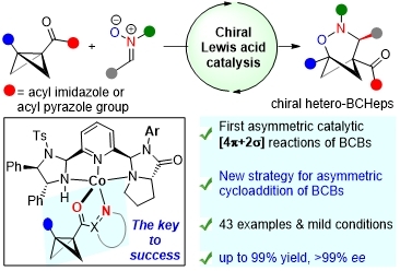 近日,在我院学科团队建设计划支持下,光电材料制备与检测学科团队武文彪博士与湖南大学冯见君教授团队合作以第一作者身份在国际顶级期刊《Nature Communications》(中科院一区,IF = 14.7)发表题为《Enantioselective formal (3 + 3) cycloaddition of bicyclobutanes with nitrones enabled by asymmetric Lewis acid catalysis》的研究论文。