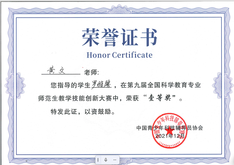 许兰等指导学生获第九届全国科学教育专业师范生教学技能创新大赛一等奖8项