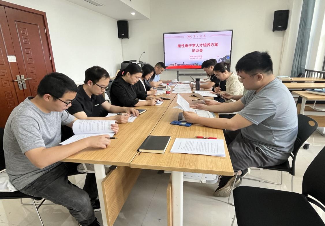 为了持续推进我校“两坚持 两拓展”战略,发展好柔性电子学专业,提升我院柔性电子学人才培养质量。2024年5月14日下午,我院在百熙楼1009召开柔性电子学专业人才培养方案论证会。会议由邹立军副院长主持,许兰院长、吴昌义副院长、物理系许文昊主任、化学系董建玉主任、交叉系陈慧主任及交叉科学系的全体老师参与了本次会议。