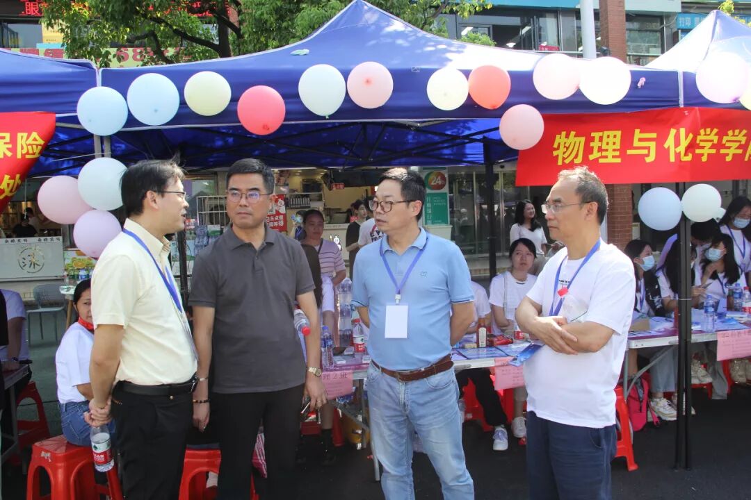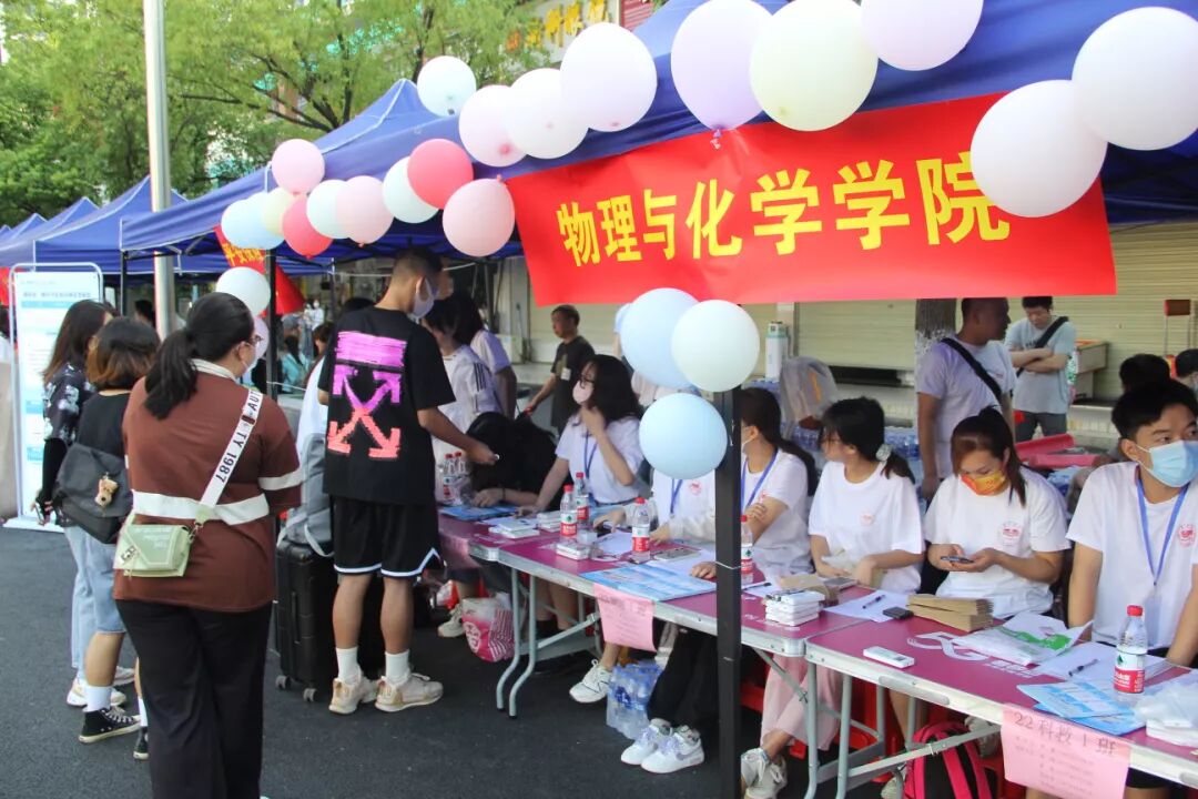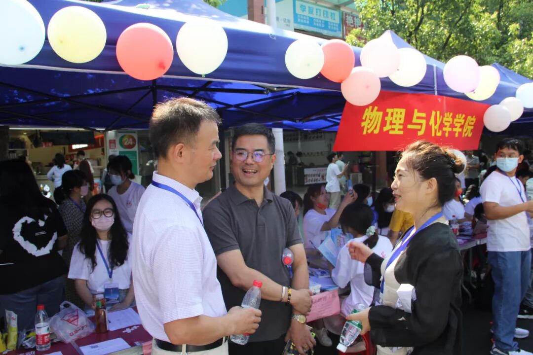 报到期间,伟的国际1946bv党委书记罗成翼、校长童小娇与全体党委委员、校领导班子和相关职能部门的负责人来到物化院迎新现场,检查指导迎新工作,与前来报到的2022级新生亲切交流,向他们表示热烈欢迎,也向参与迎新工作的师生员工表达慰问。学院也十分关心志愿者们的身体状况,为迎新志愿者和新生副班们提供了可口的午餐和充足的饮水。