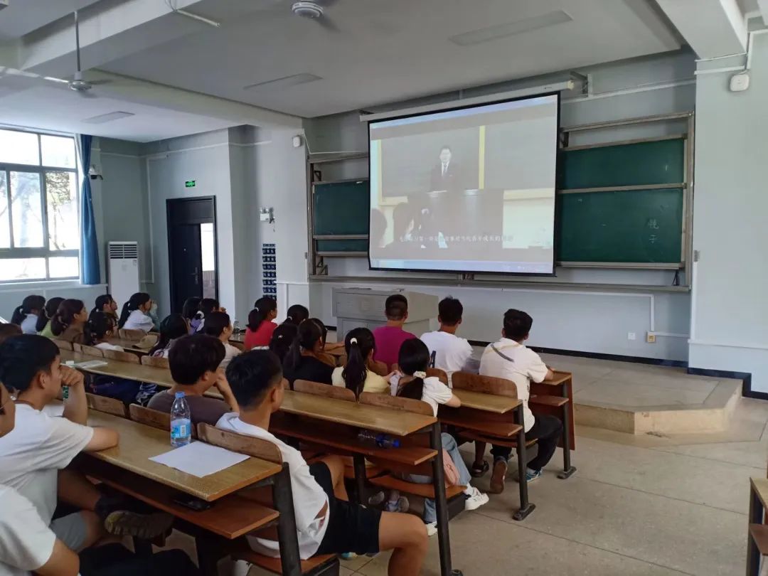 物化院各新生副班们带领新生们逛遍校园,了解每栋教学楼背后的故事,接受伟人母校的红色文化浸润。随后全体新生观看了罗成翼书记的开学第一课《毛泽东与第一师范的故事对当代青年成长的启示》,罗书记生动讲述了毛泽东“立志高远的故事”、“强身健体的故事”、“勤奋学习的故事”、“游学调研的故事”,让新生们对主席母校有了更加直观、透彻地了解,也让新生们对于今后的大学生活规划有了更加清晰的计划。22物理2班罗嘉乐同学看完后深有感触地说到:“罗书记的这堂课让我更加明白立大志、强体魄、勤学习、广调研的道理和意义,我也要向毛泽东学长一样,在一师打下学问基础!”