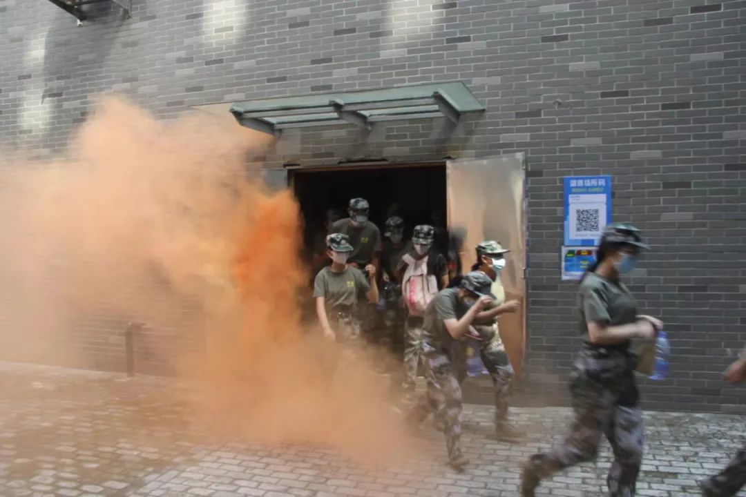 随着田汉剧院五个逃生出口的烟雾弹喷发,新生们在安保人员的指导下迅速地逃离了“火场”。本次消防逃生演练用最还原现实的方法,让同学们对火灾的发生条件和自救方式有了更为深刻的体验和认识。