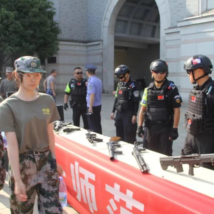 上午8时,长沙市公安局高新分局警官章婷、特巡警支队高新大队干警们在拱门前对2022级新生开展了反诈等法制安全知识宣讲。章婷警官从刷单、裸聊、校园贷等方面结合各大学校园高发的各类典型案件,为新生讲解诈骗分子实施诈骗的手段并教授新生们如何应对校园诈骗。特巡警大队的干警们以展示各种警用器械、模拟抓捕罪犯、演练用枪射击等方式向新生们进行了防暴演练。现场火药燃烧的气味、枪械击发空包弹的爆炸声点燃了新生们学习法制安全知识的热情。