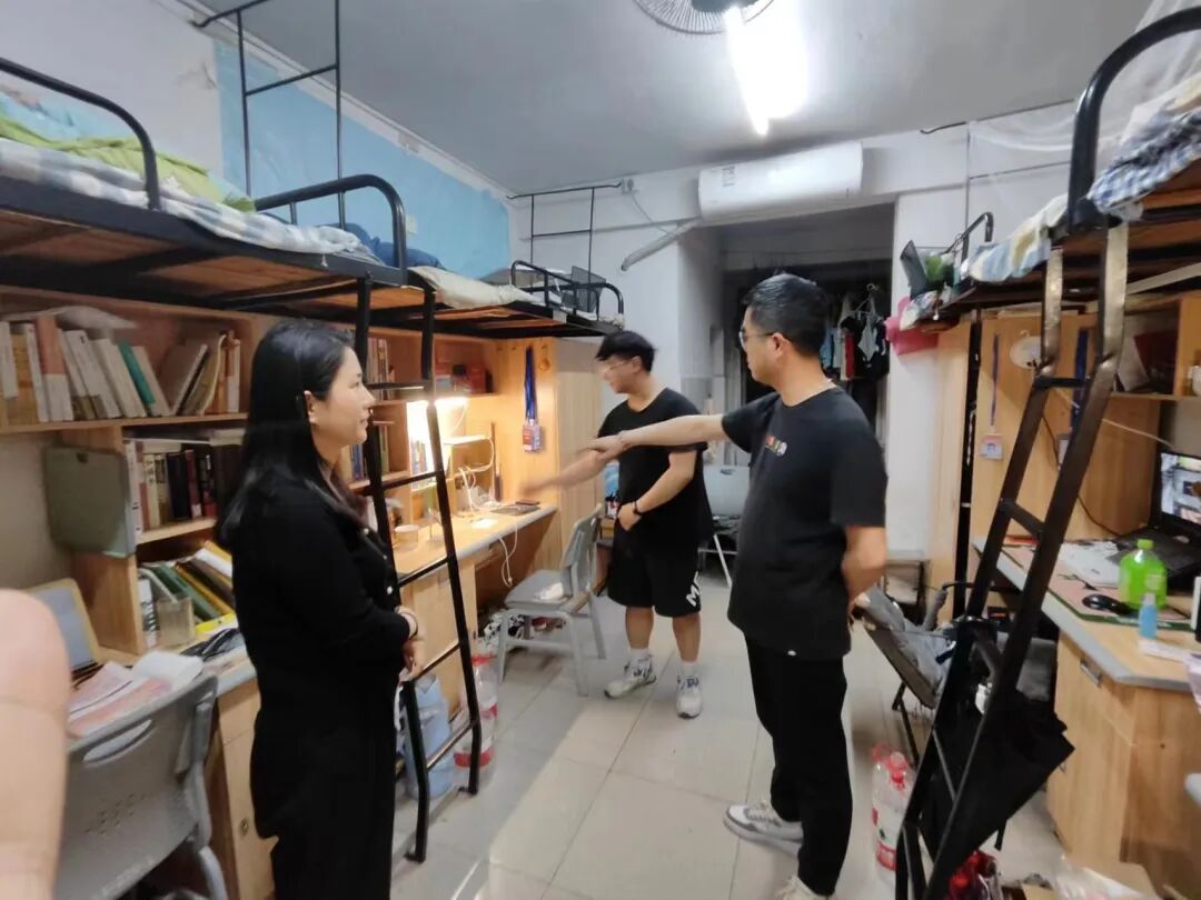 为了提高学生行为规范意识,加强学生宿舍安全管理,切实做好学生宿舍整洁安全工作,提高学生宿舍安全防范意识。5月21日晚,bv1946伟德国际始于英国党委书记陈志武、副书记曾琳娜、院团委书记石慧、辅导员李珊老师深入走访学生公寓,查看学生们的居住环境,关心毕业生就业相关情况,用关怀与祝愿为毕业生送行。