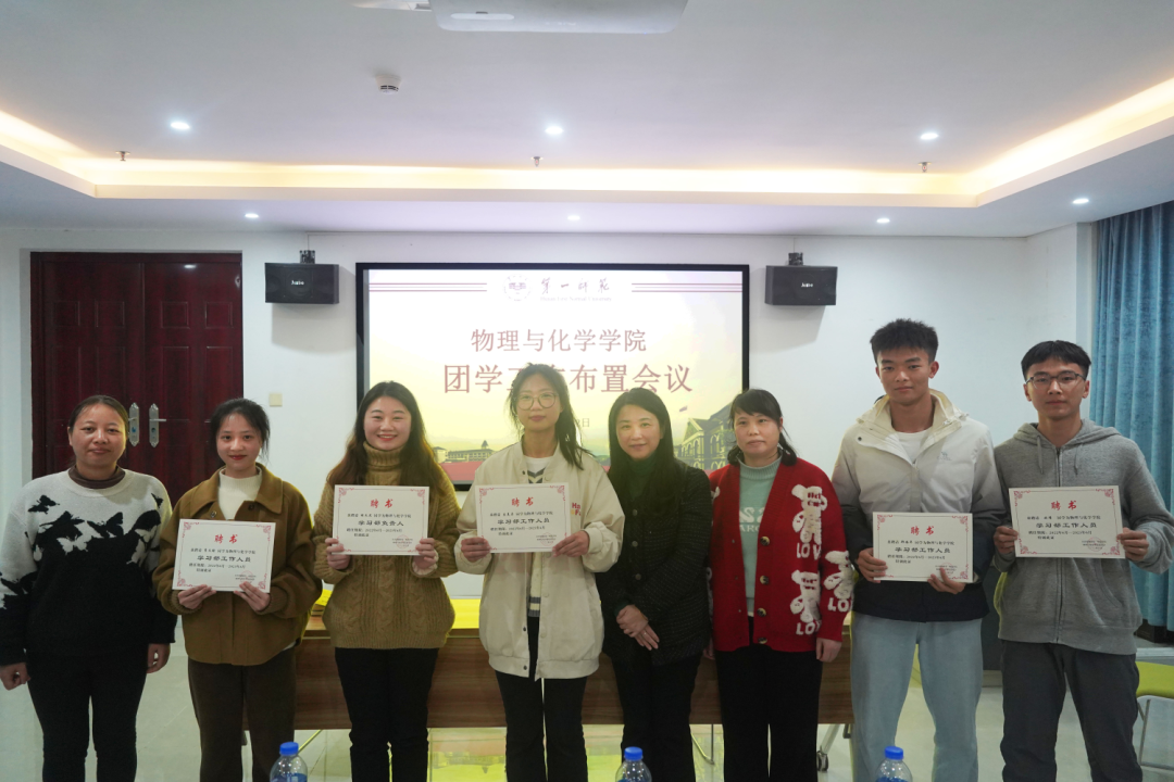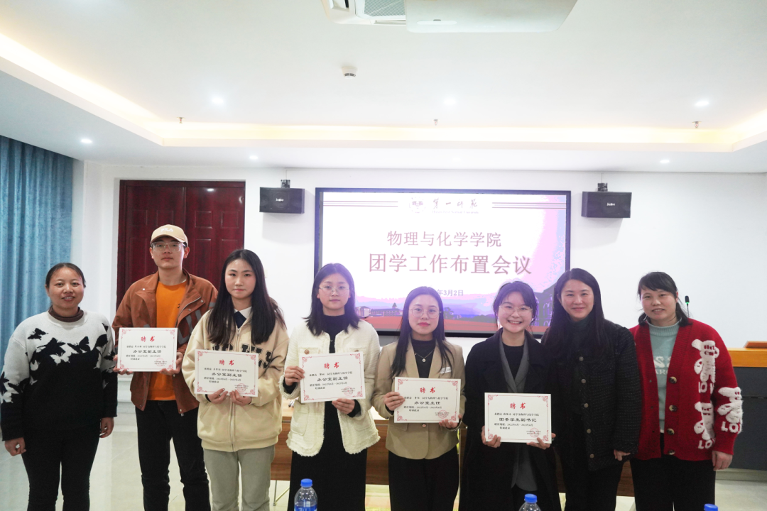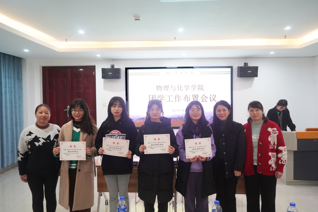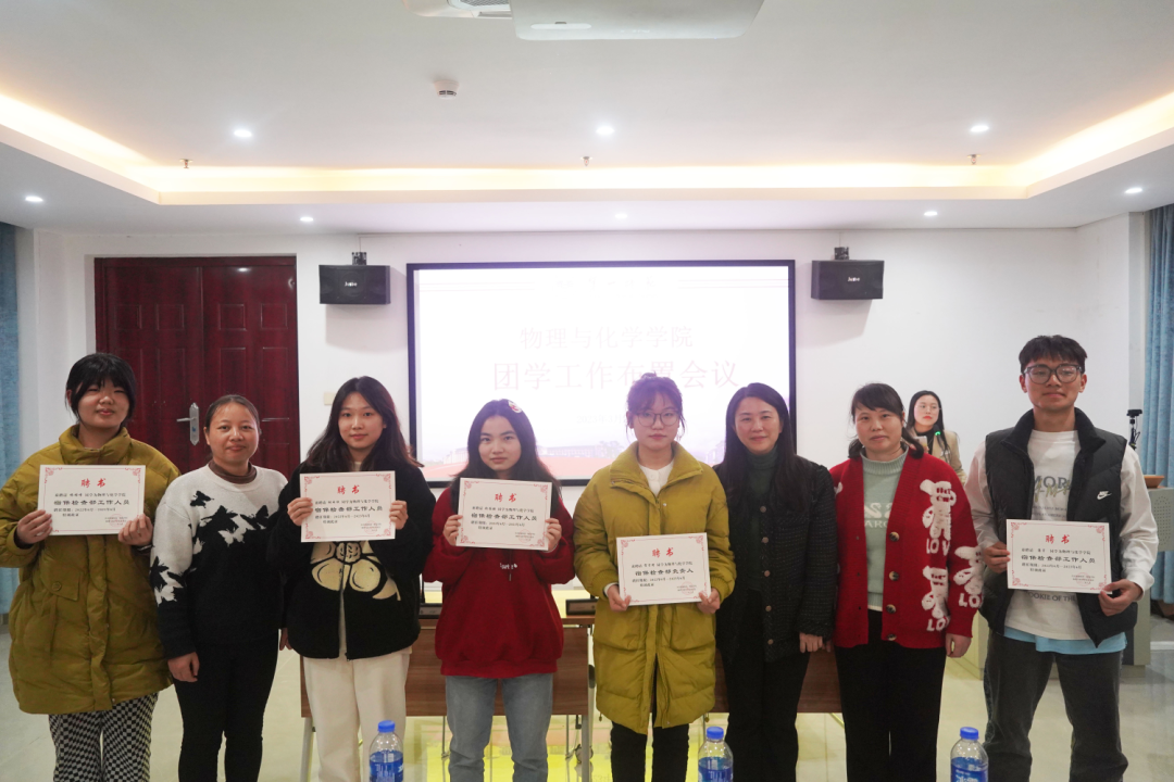 会议伊始,由物化院学生会执行主席杨娜做学生会工作汇报、团委办公室主任曹裕做分团委工作汇报。接下来辅导员李珊老师就各部门工作开展情况进行总结和部署安排。而后团委书记石慧老师做工作情况分析总结,对各部门真情奉献的服务精神表示了肯定,同时也对团学工作人员提出了期望:第一,要珍惜团学这个平台;第二,以身作则,工作学业两不误。